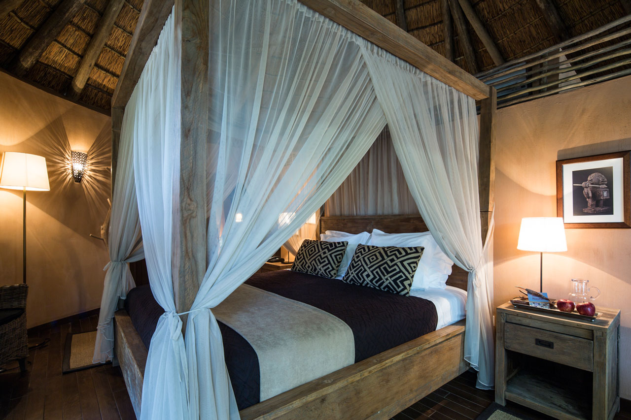 Os seus Bungalows, em forma de cubata redonda, espelham a criatividade, o conforto, bom gosto e requinte africano, que lhe proporcionam a tranquilidade desejada. Estão equipados com ar condicionado, TV a cabo, cofre, frigobar e telefone.