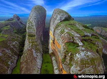 Rock formations of great natural beauty, where the footprints of Queen N'Ginga M'Bandi and King N'Gola Kiluange are said to be marked. The Black Stones are a set of rock blocks of enormous dimensions that occur in the locality of Pungu-a-Ndongo, municipality of Cacuso, province of Malanje. The ensemble is composed of intrusive rocks that have been exposed by erosion, over the centuries, and well-consolidated sedimentary rocks (sandstones and conglomerates).